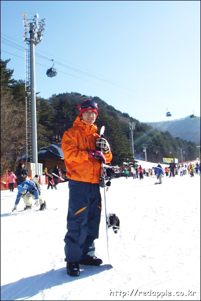 용평 스키장 2009. 1. 3. 토. 작년 크리스마스, 연말, 올 신년연휴 내내 집에 있었던 우리 호야 보드복 구입한것도 오고 내 보드장갑 구입한것두 와서~ 어제 저녁 가자~ 라고 이야기 한뒤 오늘 아침 7시반에 일어나서 7시 50분쯤 집을 나섰다~ 용평스키장으로~~ 고고씽~ 용평에 오니 11시쯤 . 렌탈샵에서 보드 빌리고 주차하고 리프트권 끊고 (오전,야간권-12:30~밤10시) 엘로우, 그린,메가그린, 곤도라 타고 전망대에 올라가서 밥먹구 50분 걸려서 5.5km 를 내려와서 기진 맥진 차한잔 마시고쉬다가 6시부터 9시가 넘어서까지~ 신나게 메가그린에서 열띰히 보드탔다~ 오늘 날씨 참~~ 좋았다~ **곤도라는 4시가 마지막으로 올라감. **전망대 2층 양식당은 2시반까지 입장/ 3시까지 주문가능 **햄버거스테이크 20,000/돈까스 16,000/스파게티 15,000/불고기덮밥 16,000 **음식주문하면 빵,스프,커피,샐러드,밥,국은 부페식